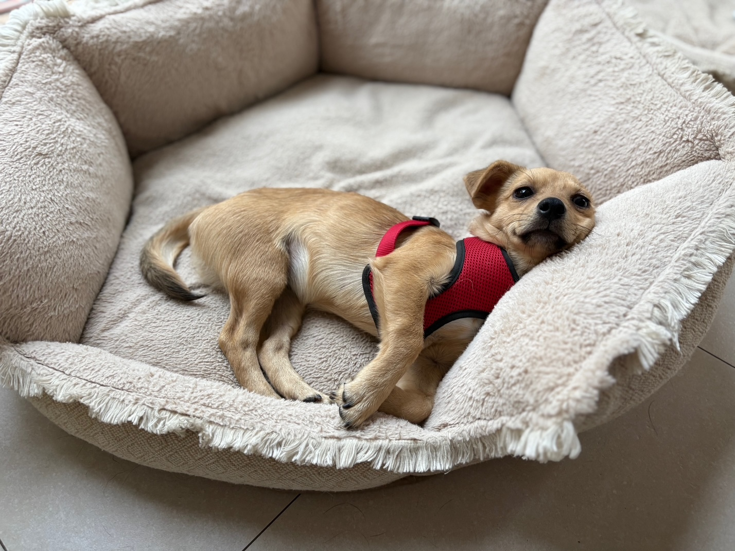 Bitte auch daran denken, dass Minisu das alleine bleiben schrittweise lernen muss. Aktuell schafft sie in ihrem gewohnten Umfeld im Rudel schon kleinere Auszeiten.