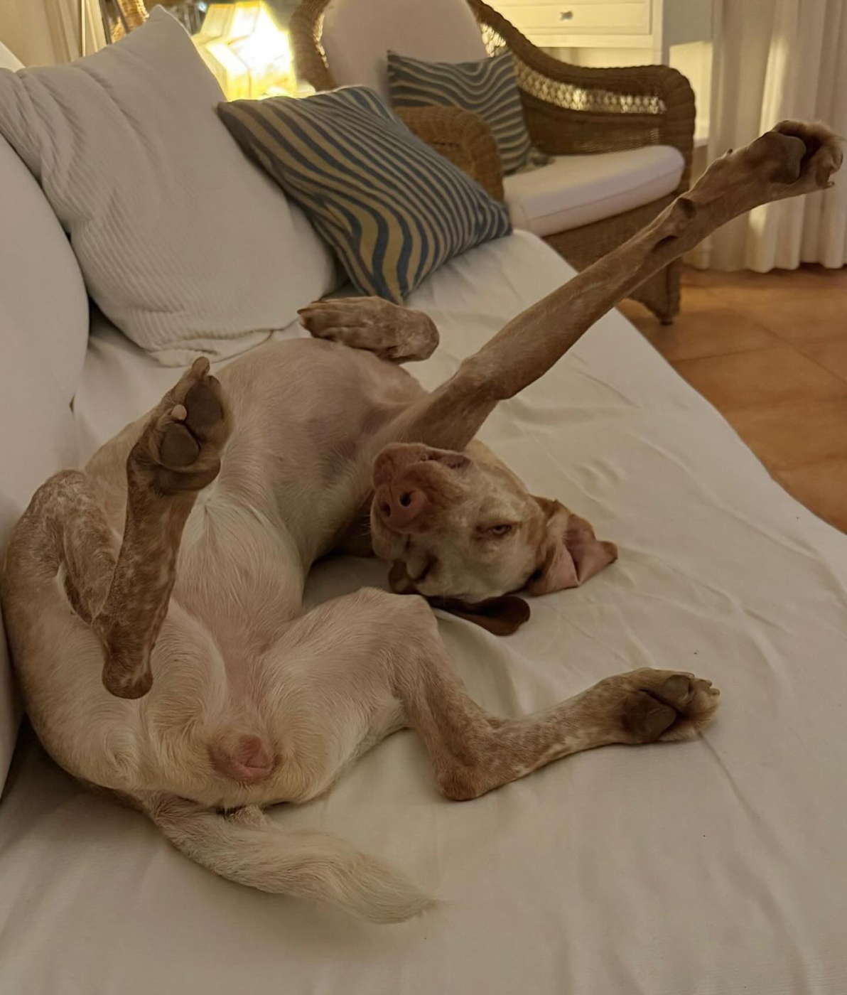 Eine ca. 1,5 Jahre alte Pointer-Mischlingshündin (vermutlich Ca Mè Mallorquí), die aus der Tötungsstation Natura Parc auf Mallorca stammt. Sie wurde dort bereits zum zweiten Mal abgegeben, weil man mit ihrer Ängstlichkeit überfordert war.