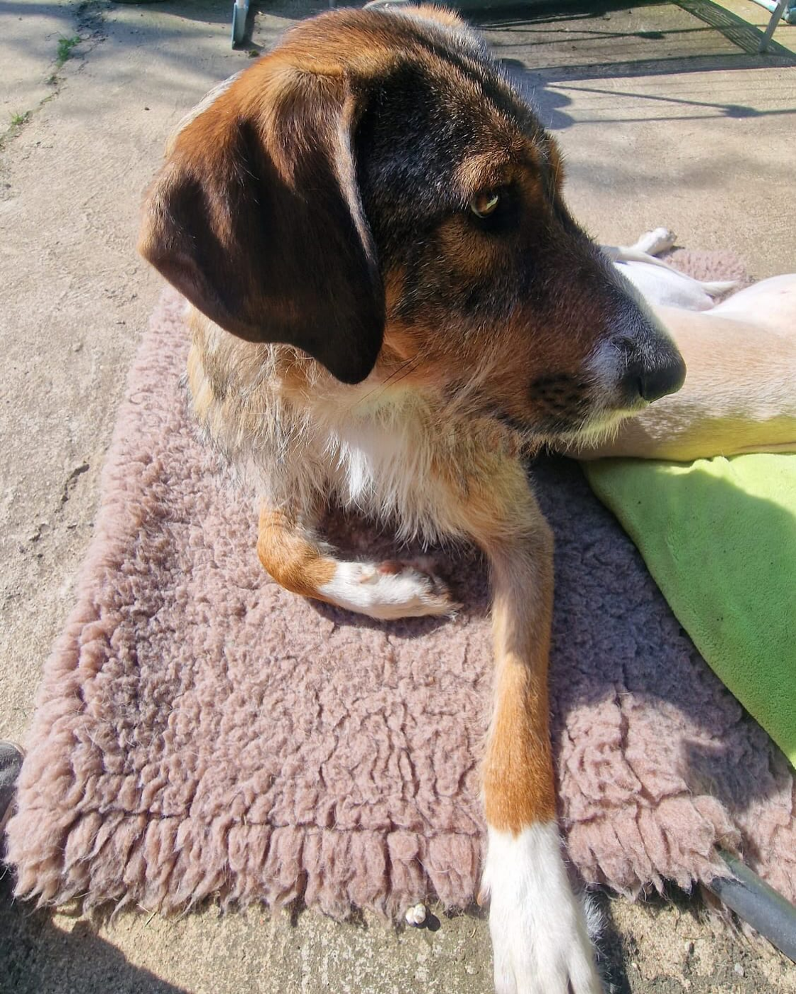 Hier kommt unser Sascha den Kerl konnten wir damals mit seiner Mama und seinem Bruder übernehmen. Sascha war ein sehr ängstlicher Junghund der sein Leben in einem Tierheim aufgewachsen ist. Durch viel Glück durfte der tolle Bube auf eine Pflegestelle nach Deutschland reisen. Die Pflegestelle berichtet: Sascha hat sich bei uns schon sehr gut gemacht. Er hat sich an uns gewöhnt und vertraut uns. Fremde Menschen sind für ihn noch unheimlich und er bellt sie manchmal an. Aber er ist niemals böse oder würde schnappen. Sascha ist wiederum aber auch neugierig und schnüffelt hinterher wenn sie weg gehen. Mit Leckerchen und freundlichem Zureden kann man sich aber auch sein Zutrauen erkaufen. Was er gelernt hat kann er gut umsetzen. Er kann auch schon etwas allein bleiben oder er kann mit ins Büro gehen da legt er sich in eine Ecke und bleibt da liegen. Wir würden Sascha gerne zu anderen Hunden vermitteln. Er liebt Hundegesellschaft. Er kuschelt auch mittlerweile gern mit uns. Bürsten findet er auch toll,da schmeißt er sich direkt wenn man die in die Hand nimmt auf den Rasen und legt sich auf die Seite damit man bürsten kann. Im Garten springt er rum wie ein kleiner Rehbock und macht den Clown,freut sich wie Bolle wenn man mit ihm spielt. Spaziergänge außerhalb sind gut,da geht er gut an der Leine ,Nase am Boden. Er ist auf jeden Fall ein ganz lieber Kerl der immer noch ein kleiner Angsthase ist, aber das wird mit der Zeit auch vergehen. Sascha ist 1-2 Jahre alt, ein großer Mischlingsrüde. Er ist kastriert, geimpft, gechipt und auf Mittelmeerkrankheiten negativ getestet. Sascha ist ein toller Hund dem man ein bisschen Zeit und Zuwendung schenken muss. Menschen mit etwas Hundeerfahrung haben keine Schwierigkeiten mit ihm. Sascha durfte auch schon mit seiner Pflegestelle in den Urlaub reisen und hat sich prima verhalten. Sascha kann jederzeit in Lippetal besucht werden.