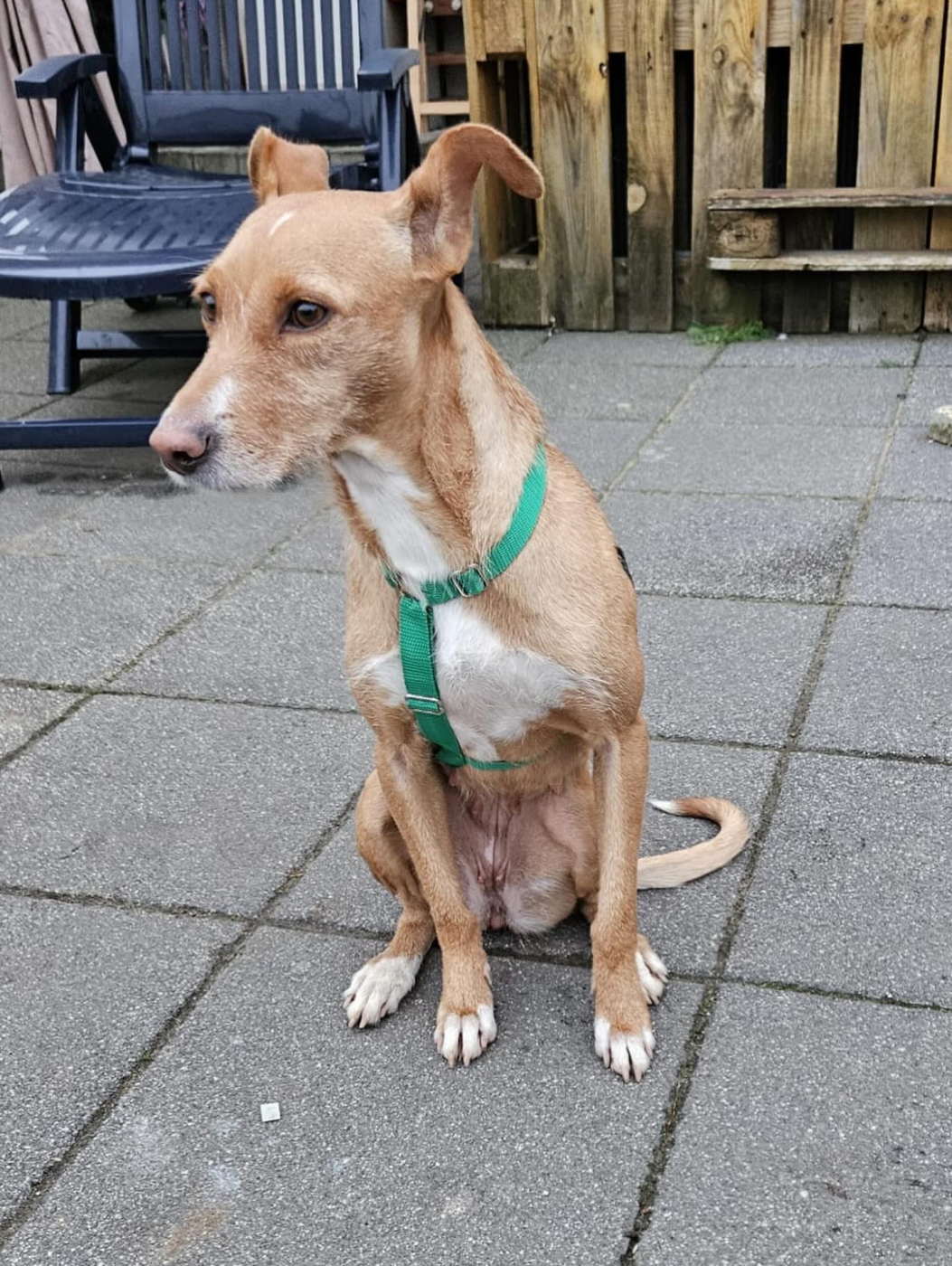 Tata ist eine kleine Podenco-Andaluz-Mix-Hündin, geboren 2022, mit einer ganz besonderen, sanften Ausstrahlung. Sie stammt aus einem Tierheim in Madrid – ein Ort voller Lärm und Unruhe, der so gar nicht zu ihrer feinen Seele passt. Umso größer ist ihr Glück, dass sie noch vor Weihnachten nach Deutschland reisen durfte und nun die Chance auf ein neues Leben hat.