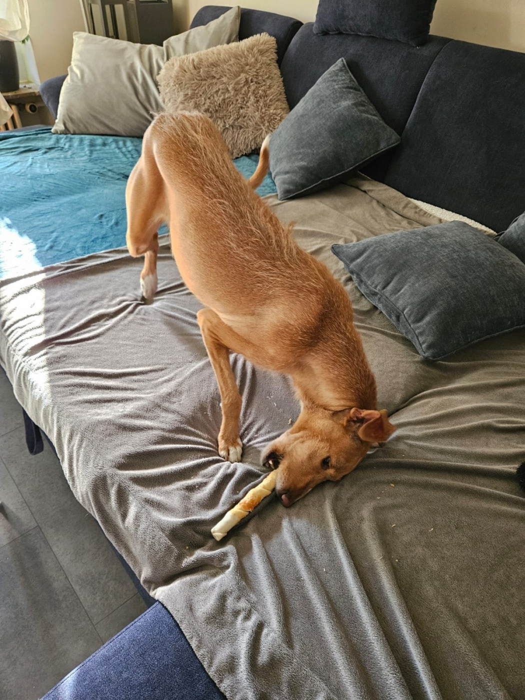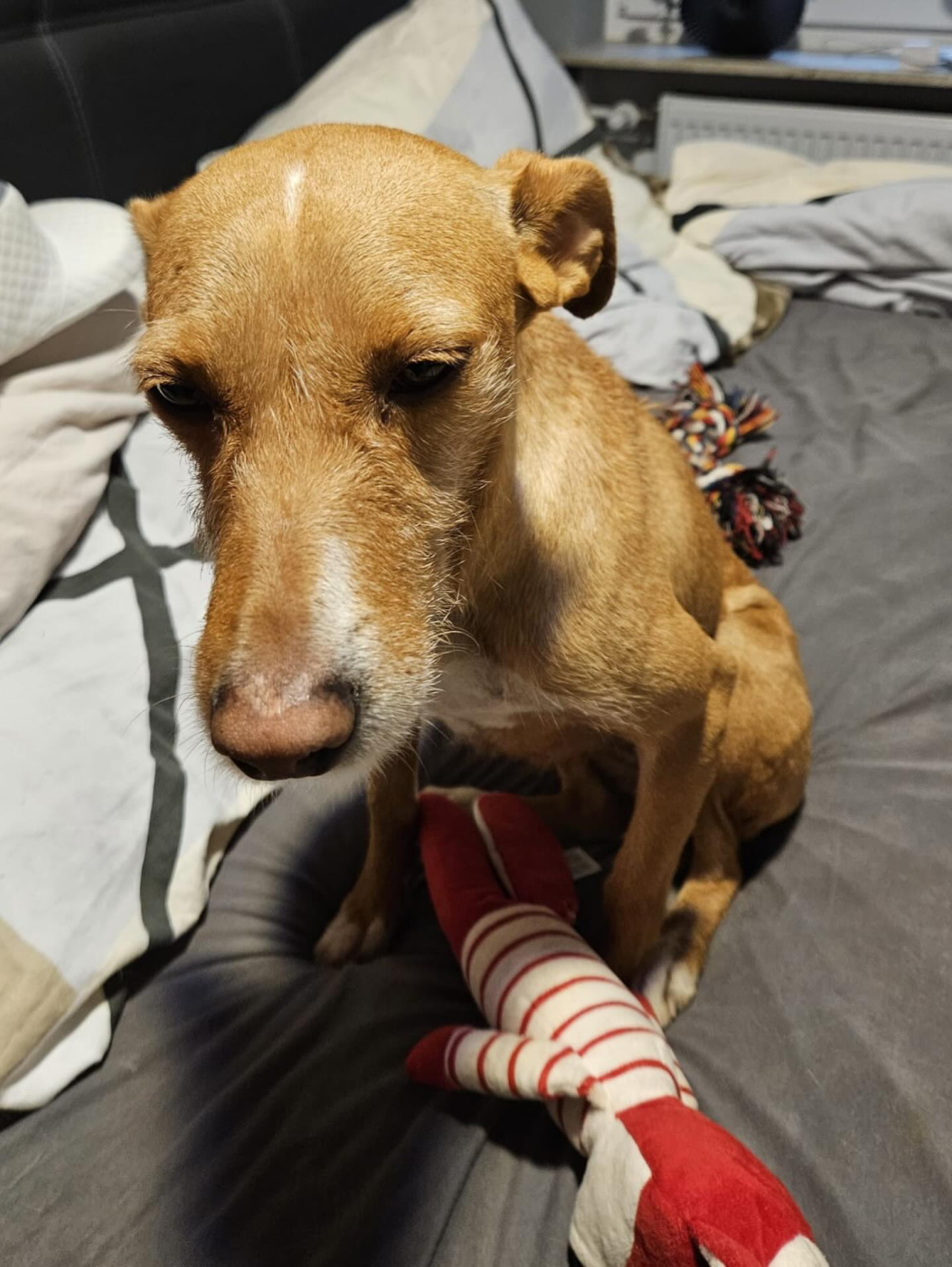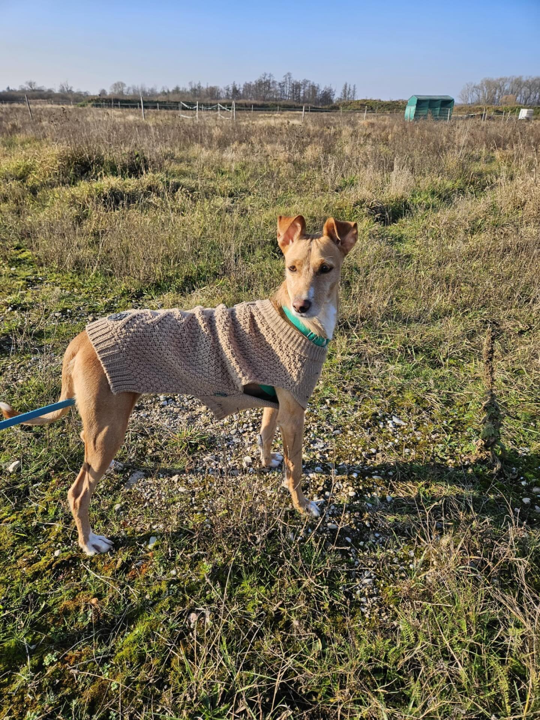 Tata ist eine kleine Podenco-Andaluz-Mix-Hündin, geboren 2022, mit einer ganz besonderen, sanften Ausstrahlung. Sie stammt aus einem Tierheim in Madrid – ein Ort voller Lärm und Unruhe, der so gar nicht zu ihrer feinen Seele passt. Umso größer ist ihr Glück, dass sie noch vor Weihnachten nach Deutschland reisen durfte und nun die Chance auf ein neues Leben hat.